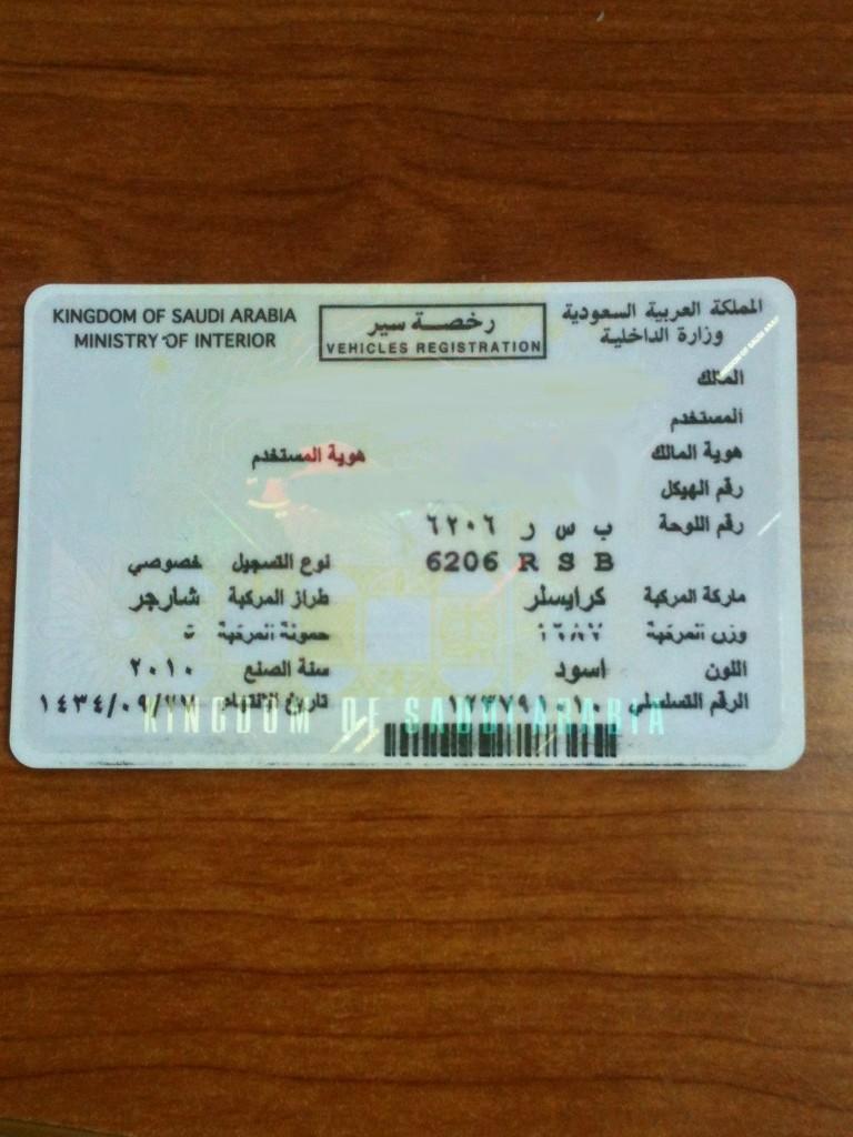 استمارة السيارة بالانجليزي